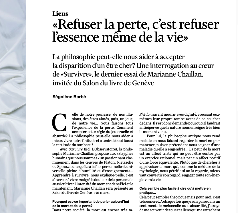 Tous Le Figaro Divers Femme actuelle Femme actuelle senior Parisien Magazine Biba Marie-Claire La Vie Psychologies Divers « Le nanisme reste le seul handicap dont on peut se moquer très ouvertement dans la rue », Le Temps, 28 mars 2026 Divers Marianne Chaillan, « Refuser la perte, c’est refuser l’essence même de la vie » , 21 mars 2026 Divers Entretien avec Virginie Delalande, Le Temps, 27 septembre 2025 Divers « Sex and the city a célébré la liberté des femmes », Le Temps, 21 août 2025 Divers La sieste, une amie qui vous veut du bien, Le Temps, 28 juin 2025 Divers Le microvoyage, Le Temps, 18 juin 2025 Divers « Notre prénom nous définit à jamais », Le Temps, 22 avril 2025 Divers Ornithérapie, Le Temps, 19 avril 2025 Divers « Le besoin d’un chez soi répond à l’époque », Le Temps, 15 mars 2025 Divers « La fratrie constitue un lieu d’aprentissage essentiel », Le Temps, 15 février 2025 Divers Sophie Galabru: « Les dernières fois ne sont pas forcément des fins », Le Temps, 15 janvier 2025 Divers « Les hommes sont souvent dans le déni », Le Temps, 18 octobre 2024 Divers Ce que nos vêtements disent de nous, Le Temps, 25 mai 2024 Divers Sans enfants ni états d’âme, Le Temps, 21 octobre 2023 Divers Sous les draps de la nuit de noces, Le Temps, 23 septembre 2023 Divers « Les affaires criminelles nous font réfléchir sur nous-mêmes », Le Temps, 3 juin 2023 Divers David Morin, « Les crises attisent la pensée complotiste », Le Temps, 15 mars 2023 Divers Les jeunes accros à la chirurgie esthétique, Le Temps, 16 février 2023 Divers Les souffrances des têtes couronnées font écho aux nôtres, Le Temps, 3 décembre 2022 Divers La chaussette est un puits intarrissable d’histoires, Le Temps, 26 novembre 2022 Divers Et si on apprenait à (mieux) faire l’amour? Le Temps, 20 août 2022 Divers J’allaite si je veux, Le Temps, 6 août 2022 Divers Ces jeunes ermites qui ont jeté la clé, Le Temps, 23 juillet 2022 Divers « La solution à la boulimie est toujours dans la tête », Le Temps, 28 mai 2022 Divers « Nos relations avec les animaux en disent beaucoup sur nous-mêmes », Le Temps, 14 mai 2022 Divers « Notre cerveau est souvent à l’origine de notre surpoids », Le Temps, 26 mars 2022 Divers « La parole se libère aussi sur l’infertilité », 12 mars 2022, Le Temps Divers Regret maternel: la fin d’un tabou? Le Temps, 7 octobre 2021 Divers « Le contact avec la nature est essentiel pour régénérer notre cerveau », Le Temps, 5 mars 2022 Divers Psychogénéalogie, qu’en dit la science? Le Temps, 19 juin 2021 Divers « Longtemps, la solitude a été le lot des pestiférés ou des fous », Le Monde, 8 octobre 2023 Divers C’est décidé, j’ai de la conversation, Vraiment 9 mai 2018 Divers C’est décidé, je me couche tôt, Vraiment, 11 avril 2018 Divers Passions hospitalières, Rose Magazine 2017 Load more Loading more… You’ve reached the end of the list